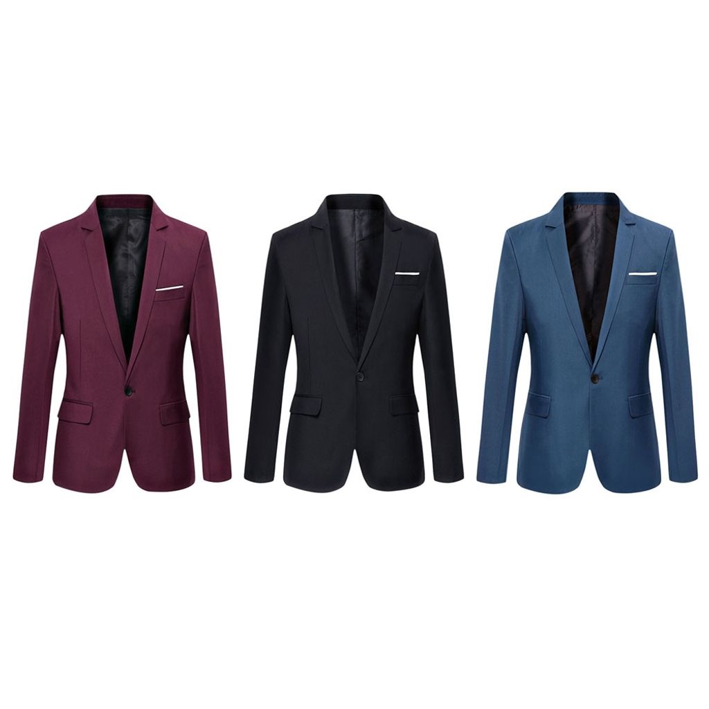 STYLISH PURE COLOR TURN DOWN COLLAR MALE SLIM FIT SUIT (CLARET M/L/XL/2XL/3XL)